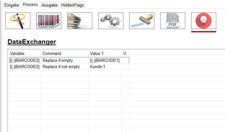 9. Wählen Sie Barcode 2 und setzen Sie die Regel auf Replace If not empty mit Kunde 1.